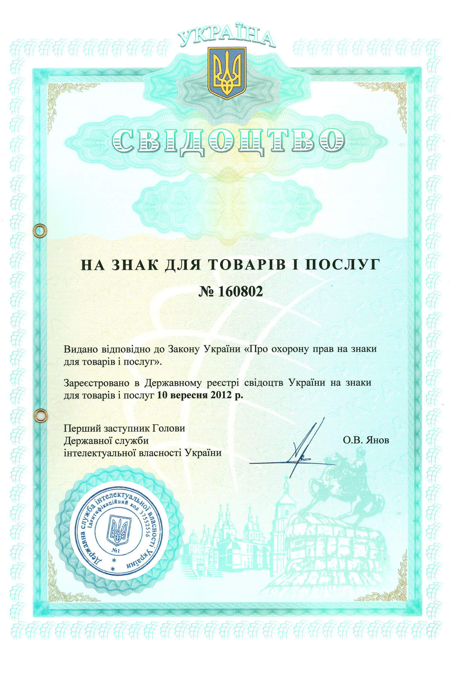 Свідоцтво на знак для товарів і послуг - 1