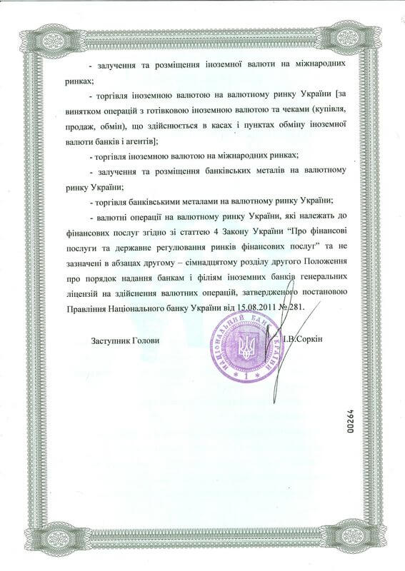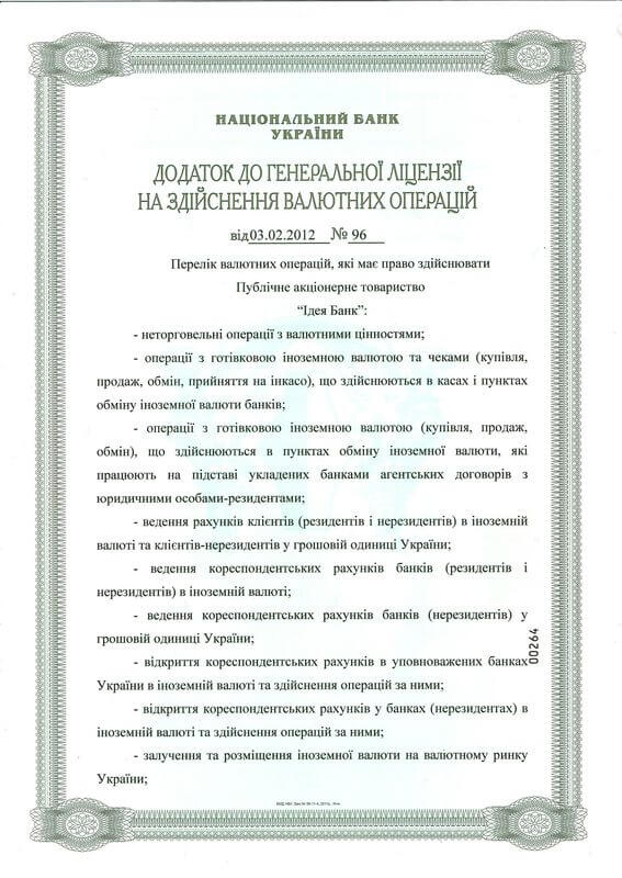 Ліцензія НБУ №96 від 04.11.2011 р.